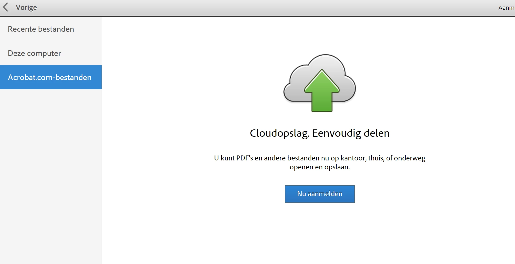 However, when clicking on this option, I do no see my saved files in the Adobe cloud (and there are several!) but a screen that asks me to sign in.