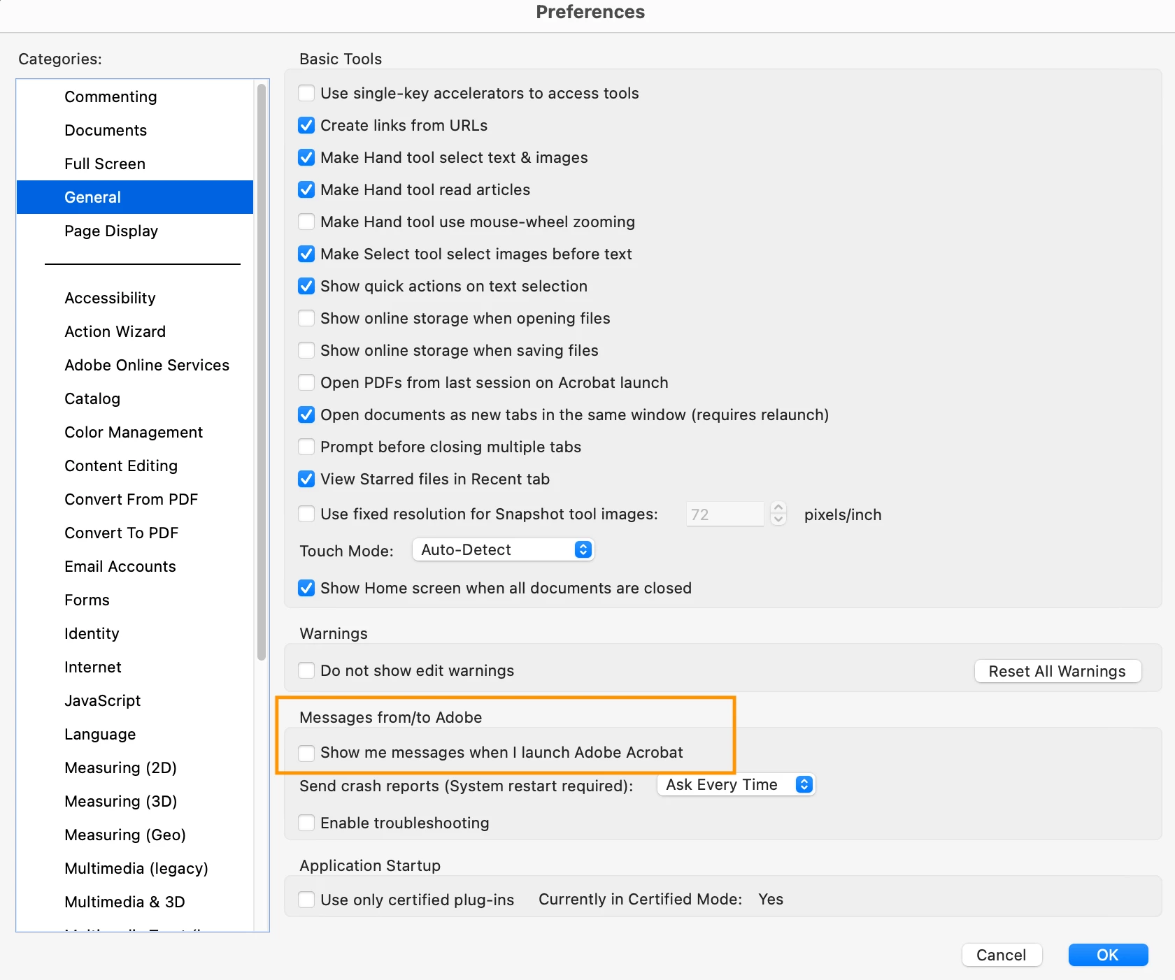 Open your Acrobat Preferences (Control K)