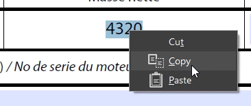I can copy text from a field that has been filled out (With either the right-click menu or ctrl+c):