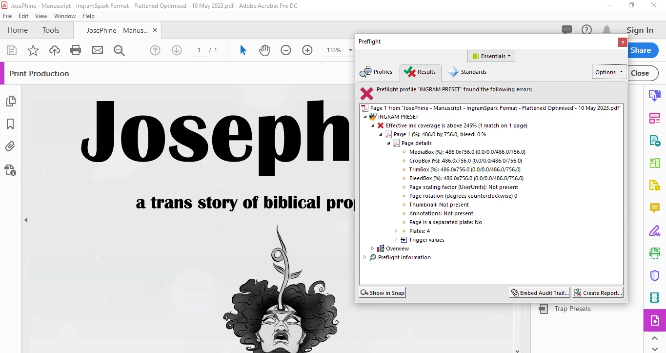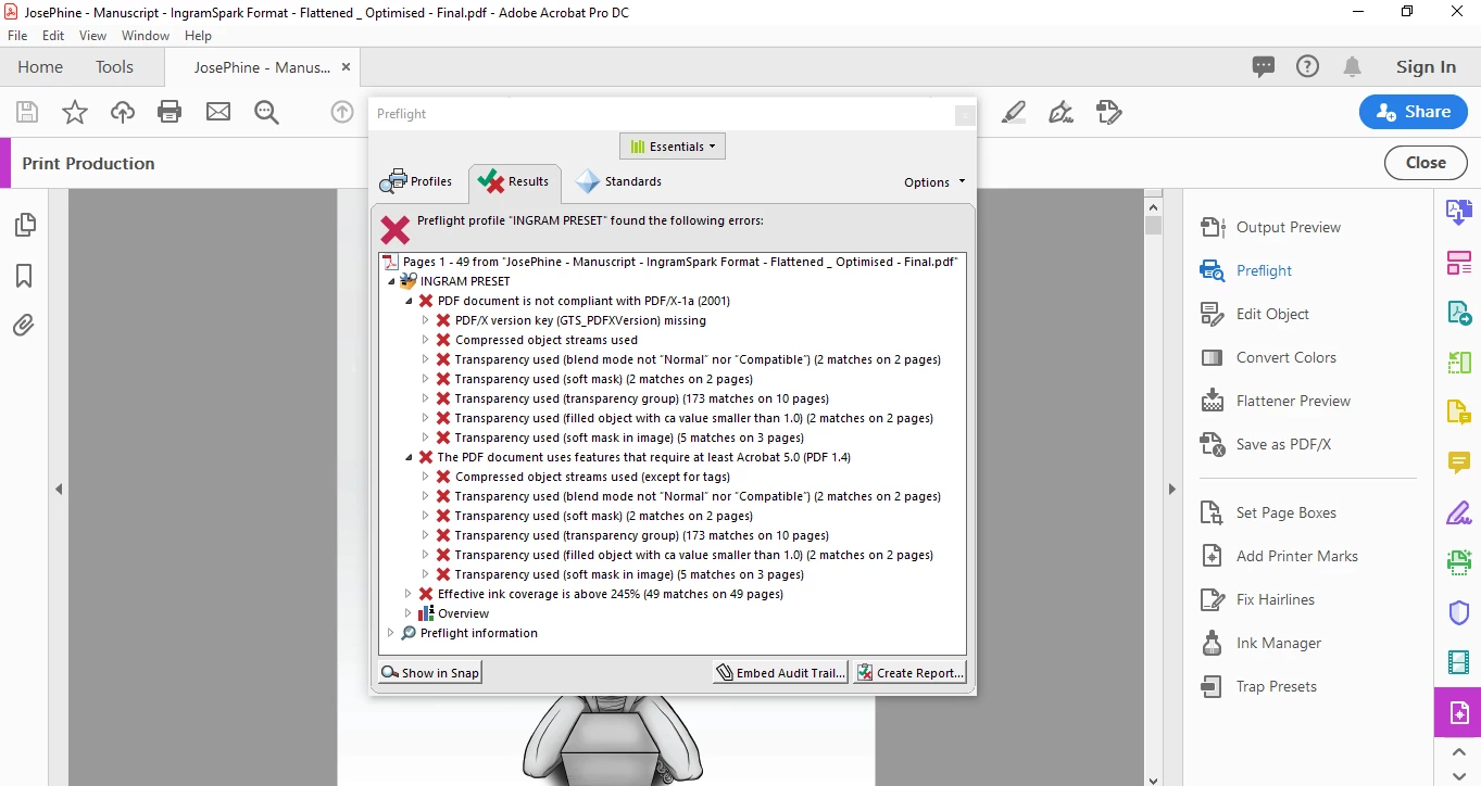 I have created book pages by illustrator, in where images are created by photoshop and they have transparencies. Before saving the ai files as PDF, I have done Select All>Object>Flatten Transparency. But in that PDF while I am anylyzing it by Print Production>Preflight then by a special preflight profile, made for targetting IngramSpark publishing standard. But unfortunately, I can see a lot of transpanencies there in the PDF. Then I went through Tools>Optimize PDF>Advanced Optimization and then cheked the Transparency option with High Resolution and then pressed OK.