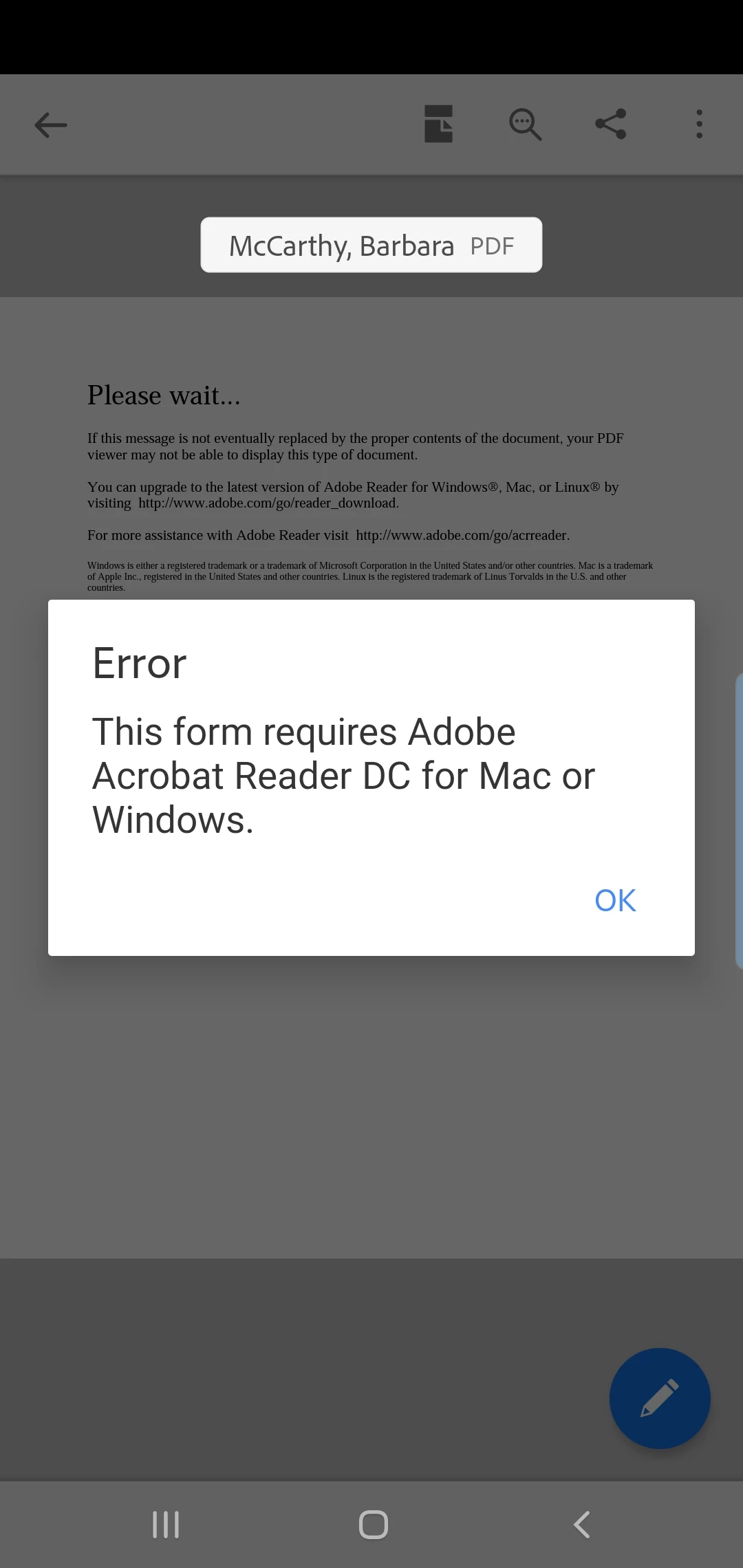 Can`t open files sent to other computers ( Acrobat DC)