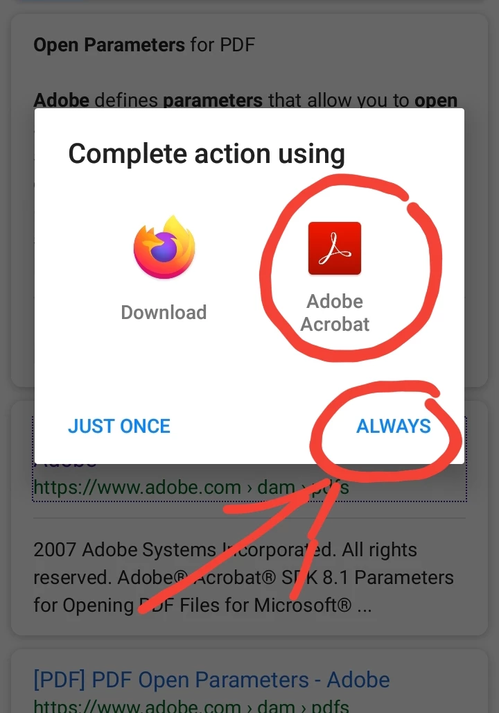 Tapping on Always make the Reader Mobile app my default PDF viewer.