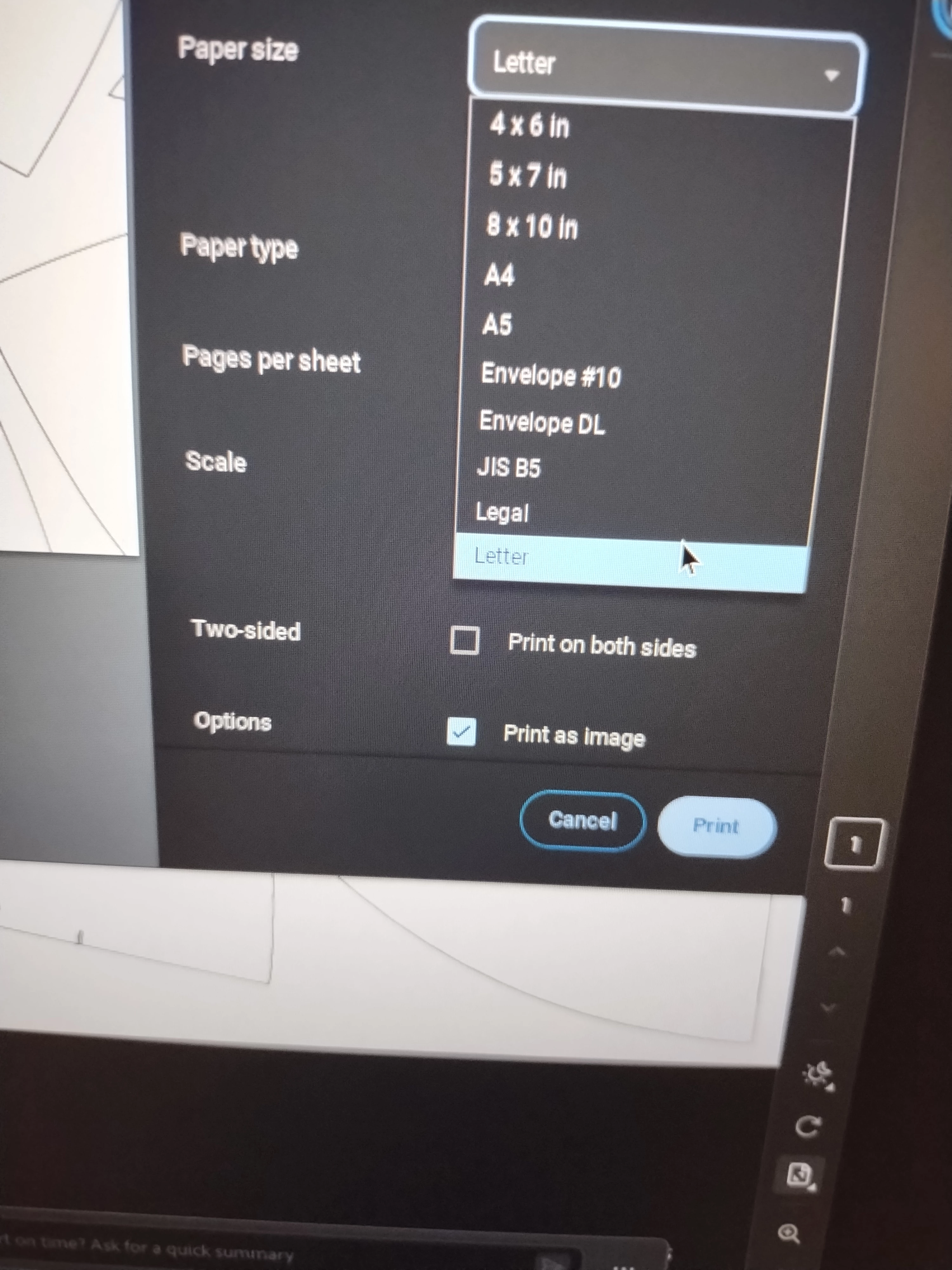 When I tried printing this as a poster this is all that shows. It doesn't give me the option. I had a vid showing the problem but it's too large so here's some screenshots.