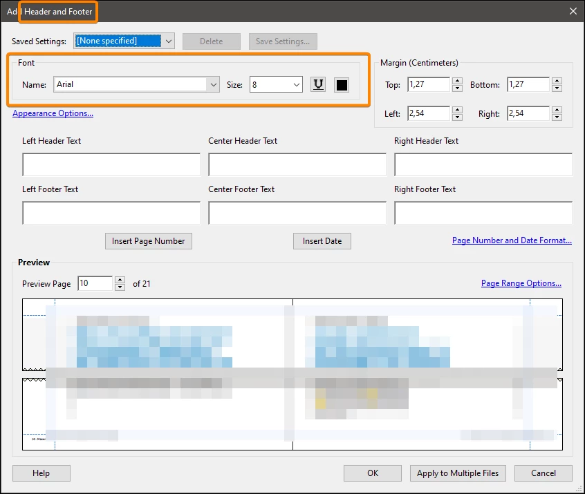 Can you change the font in the Document Numbering Action?