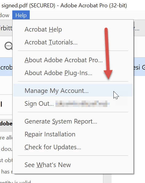 You should also be able to go to “Manage My Account” via the Help Menu of Acrobat (Pro) DC: