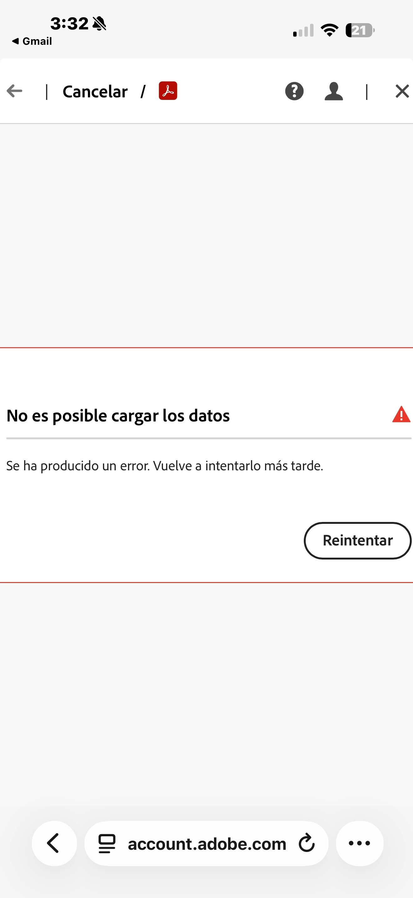 Me sale este mensaje cuando intento cancelar