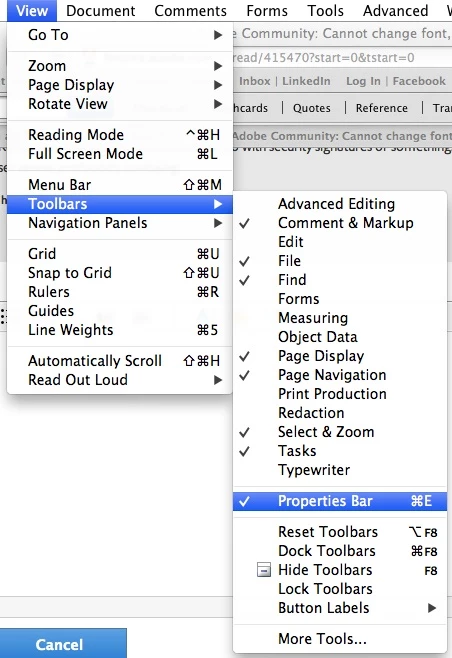 Once it is activated you can dock the tool bar with the rest of them. after enabling the properties bar when you double click in a text box you will be able to chang the font and font size. Not sure why this is not explained in help, but this is the only way to edit fonts in text boxes.