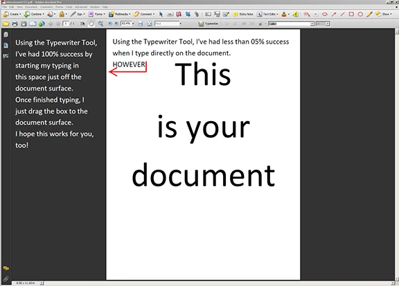 Once you have created a typed message (any number of characters is okay), you can then drag the filled-in Typewriter Text Box to any location on the document; and you can continue to edit, at will!