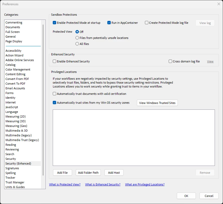 When I go to Menu > Protections > Security properties in Acrobat, it says, "Security Method: No Security".