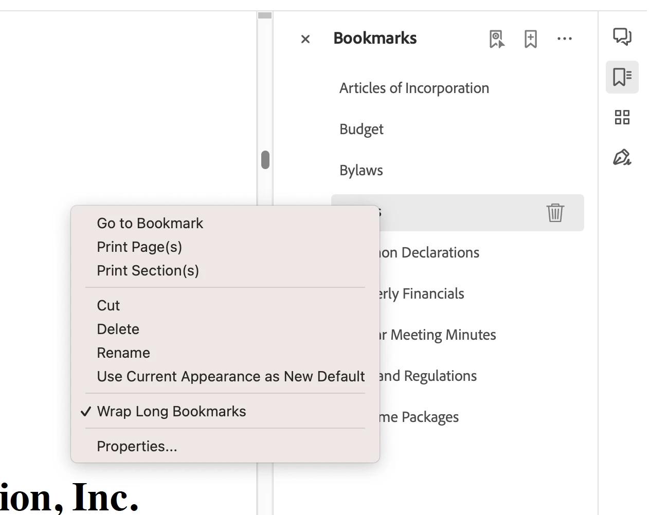 Cannot Right Click to Set Destination of Bookmark (MacOS Acrobat Pro 2023.001.20177)