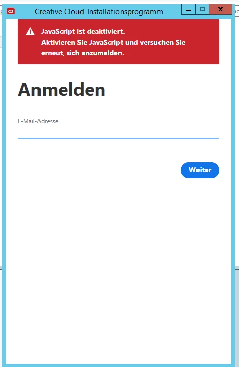 (it asking me to enable javescript but this is the installer not a browser where i could do so)
