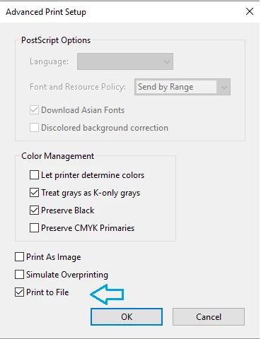 Under print dialogue box > click "Advanced", uncheck the box next to "Print to File" > and click OK