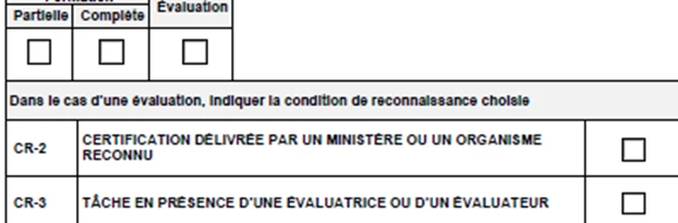 Je dois créer des cases à cocher radio (CR2 - CR3) qui sont active seulement si la case à cocher radio -Évaluation est coché.