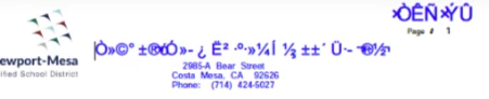 I have a user who was sent a PDF. When opening it in Adobe, when viewing it in the web browser, and when viewing it in the Outlook preview function, it displays weird characters instead of the standard Arial font that is being used. I have checked for updates on Adobe and the system and it is fine. I have sent the PDF to myself and others and it is viewed fine. I attached screenshots of what it looks like and what it should look like.