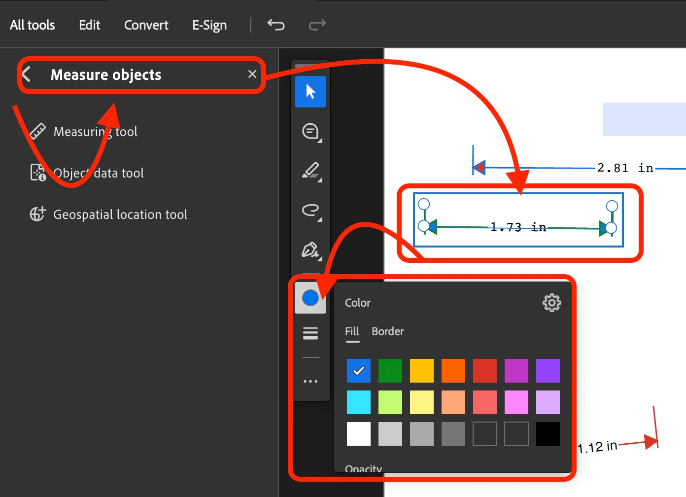 I have the problem that when i use the measurement tool on a pdf socument it works correctly but i cant change the size or color of the numbers from the measures. I know that there was a workaround with a textbox where i can define the designations and then copy it to the commentary section of the measures. But it doenst work anymore. Any adiveses?