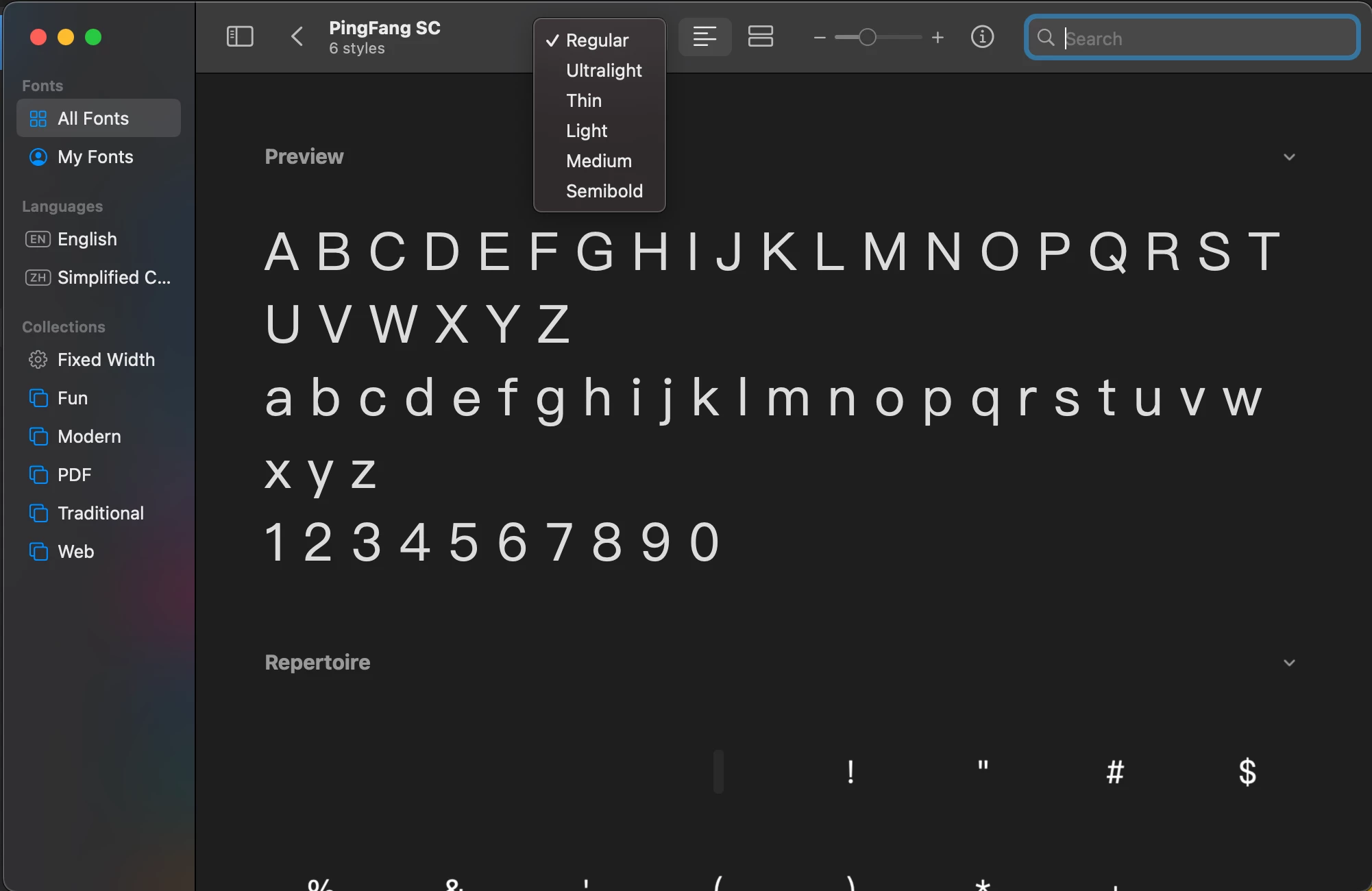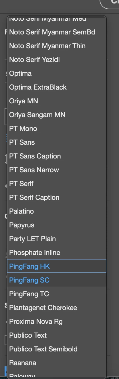 Changing PingFang SC Style