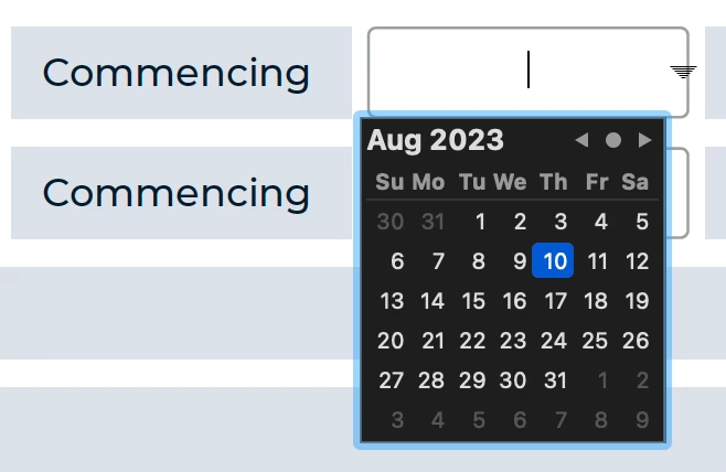I have a text field property that's formatted to Date. What I want to do is for the user to be able to choose present and future dates only when they click on it. Is that possible at all and can you share some workaround or there's really no solution for that?