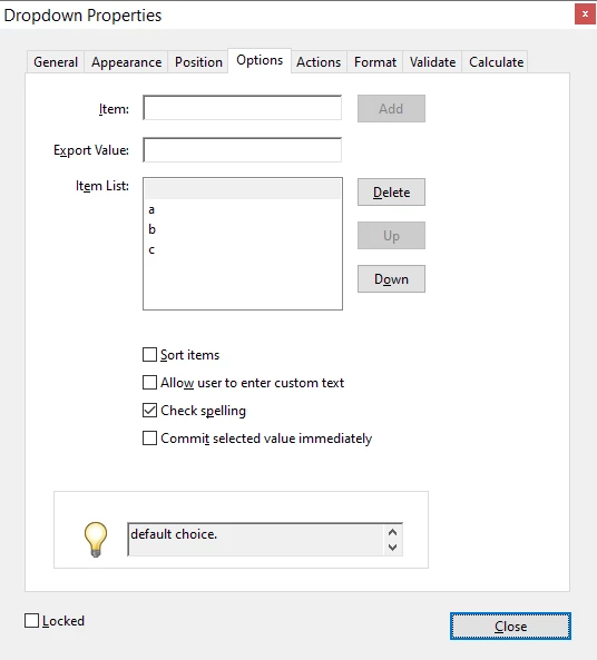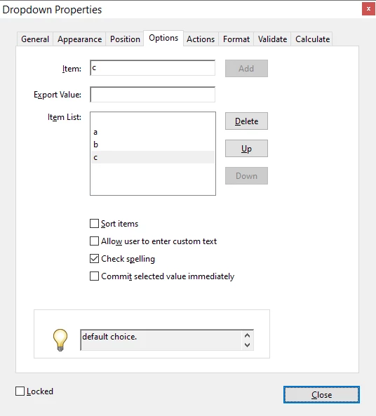 PS. Make sure you select the default value correctly. It's not just the first item in the list, it's the one's that highlighted when you close the Properties dialog.