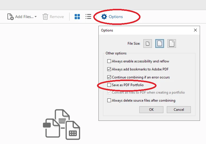 How can i combine PDF to single PDF without using Portfolio. I used portfoliot to combine the PDF file previosly but now no one can open file