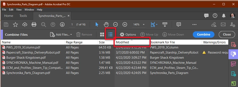I am combining about 100 PDFs and would like them to be in "Date Modified" order, not the default of alphabetical. Is this doable?