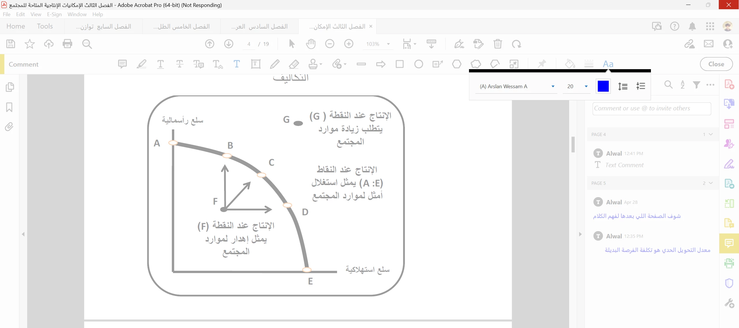 , I write in Arabic then I switch to English to type the variable name (A) then I continue to explain why in Arabic but it crashes when I do that!!