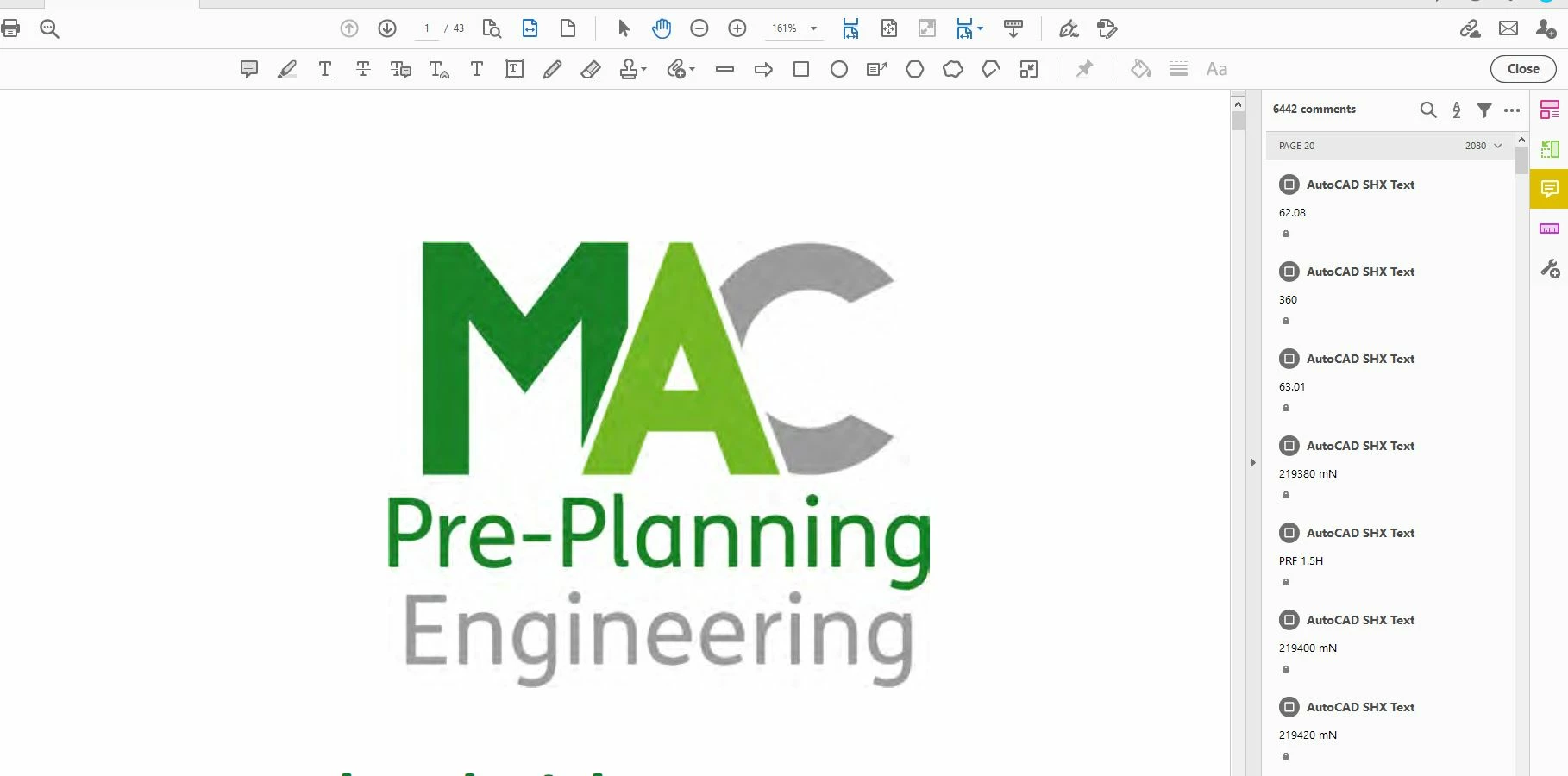 A lot of the PDFs have AutoCAD file in the rear, the comments tool autogenerates comments for these files where there are none. This can cause some PDFs to be difficulat to naviagte and slows everything down.