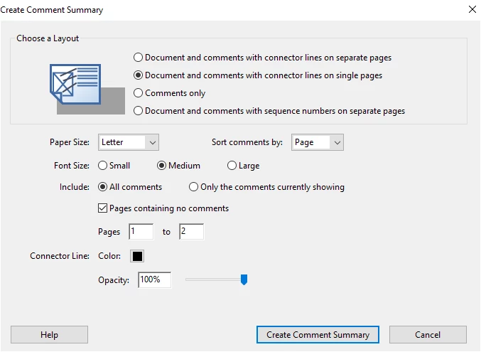 Is there any way to create a comment document that does not separate every page? Most pages of my work have only one or two comments. I would like to print all the comments on as few pages as possible . . .