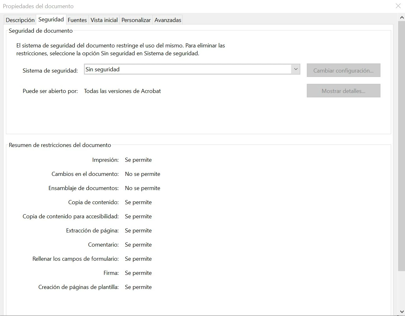 Por más que he mirado no consigo ver que el documento tenga seleccionada ninguna opción de seguridad, así que no veo que es lo que puedo modificar.