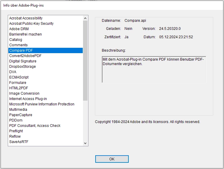 According to the instructions, there should actually be a tool called "compare" that I can use to compare two PDFs. https://helpx.adobe.com/de/acrobat/current/compare-documents.html
