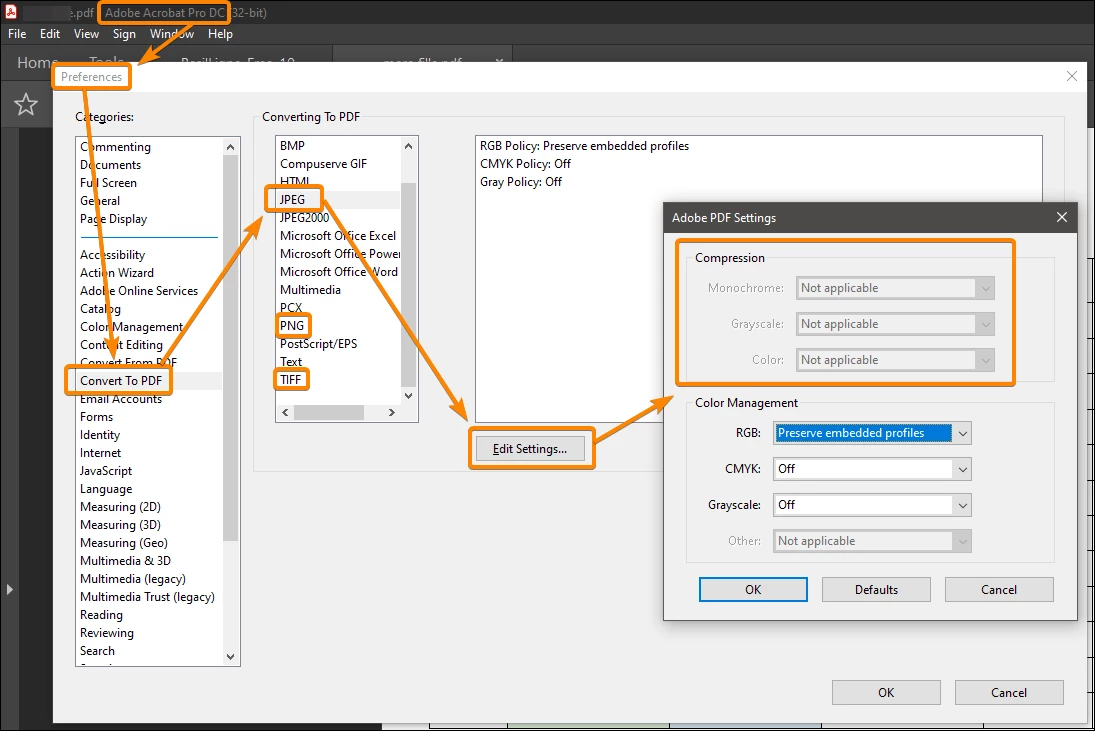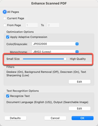 I have for many years used Acrobat xi, with generally great results. I am not getting as good as results in DC. I am archiving a massive magazine collection. Scanning to jpegs. Importing into acrobat (combine files, large setting) and then using the recognise text (editable text and images, downsized to 300dpi). The text is of course excellent but the amount of compression applied to images is far to great. How/where is this controlled.