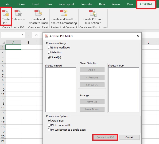 Hi there, when I try to convert multiple excel files, which contain mulitple spread sheets at the same time, the acrobat dc only converts the first spread sheet of each file. Is it possible to convert multiple excel files with multiple spread sheets at th