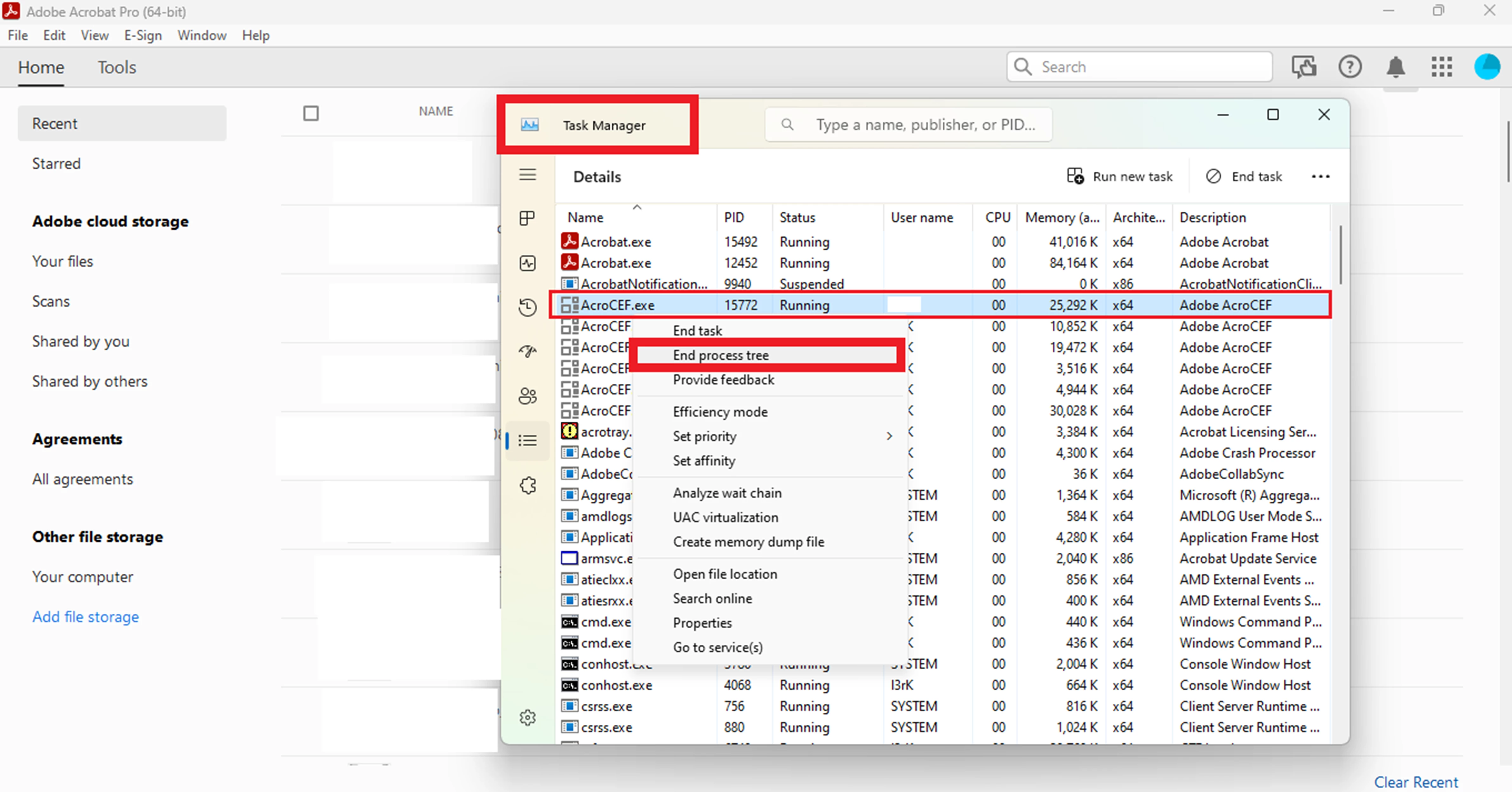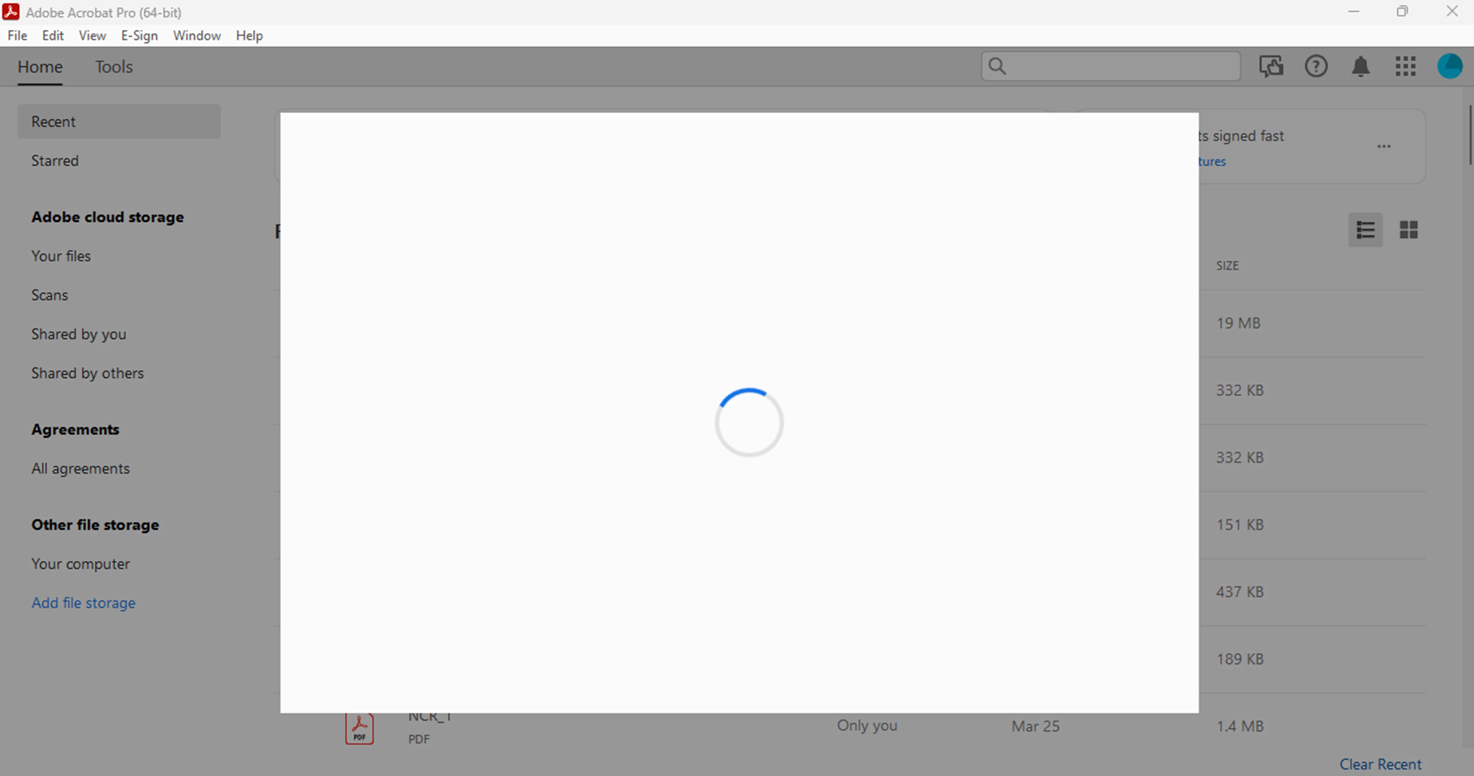 9My Adobe acrobat is frozen. The screen shows a big white square with the beginnings of a circle. I can't even get it off my computer screen no matter what I do.