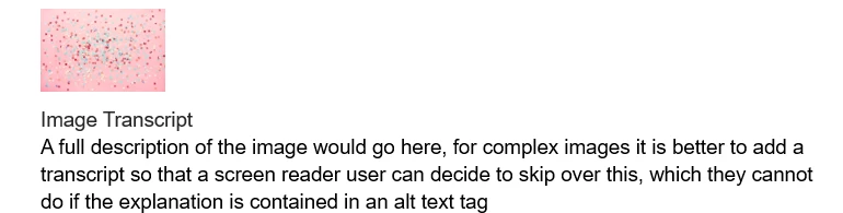 We often create guides in Word 365 with fairly complex images or screenshots. For accessibility we include a transcript of the image in an accordion. so that a screen reader user can choose if they want to listen to the transcript or skip it.