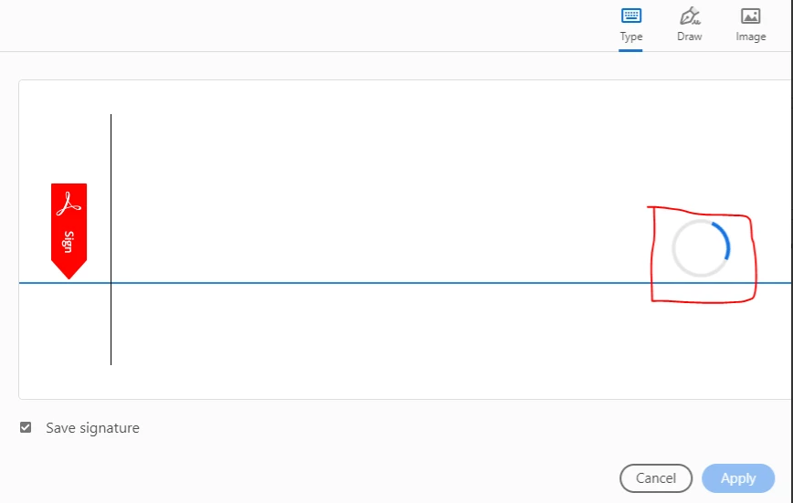 When creating a signature, it shows a circling icon which does not go away. This breaks the signature line if it is long enough to reach the circle when saved. Have uninstalled all Adobe products and deleted the following folders, restart and reinstalled Acrobat Std.