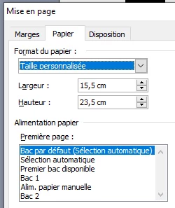 je n'ai que l'option taille personalisée dans word, mais que Distiller ne reconnait pas, si cette taille n'est pas sauvegardée avec un nom spécifique.