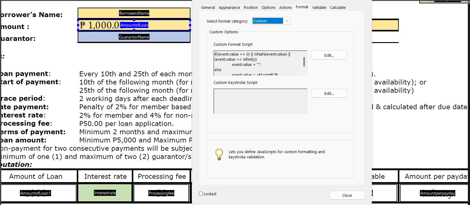 I just can't figure out where I went wrong. I formatted the value through a custom format script. It looks okay in the preview, but when I open the PDF in another PDF reader, it shows so many 0s.