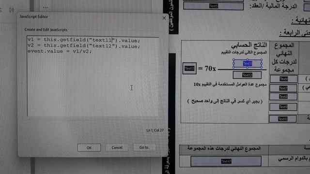 We're trying to get "Text13" to get the result of dividing "Text11" by "Text12" then multiplied by 70