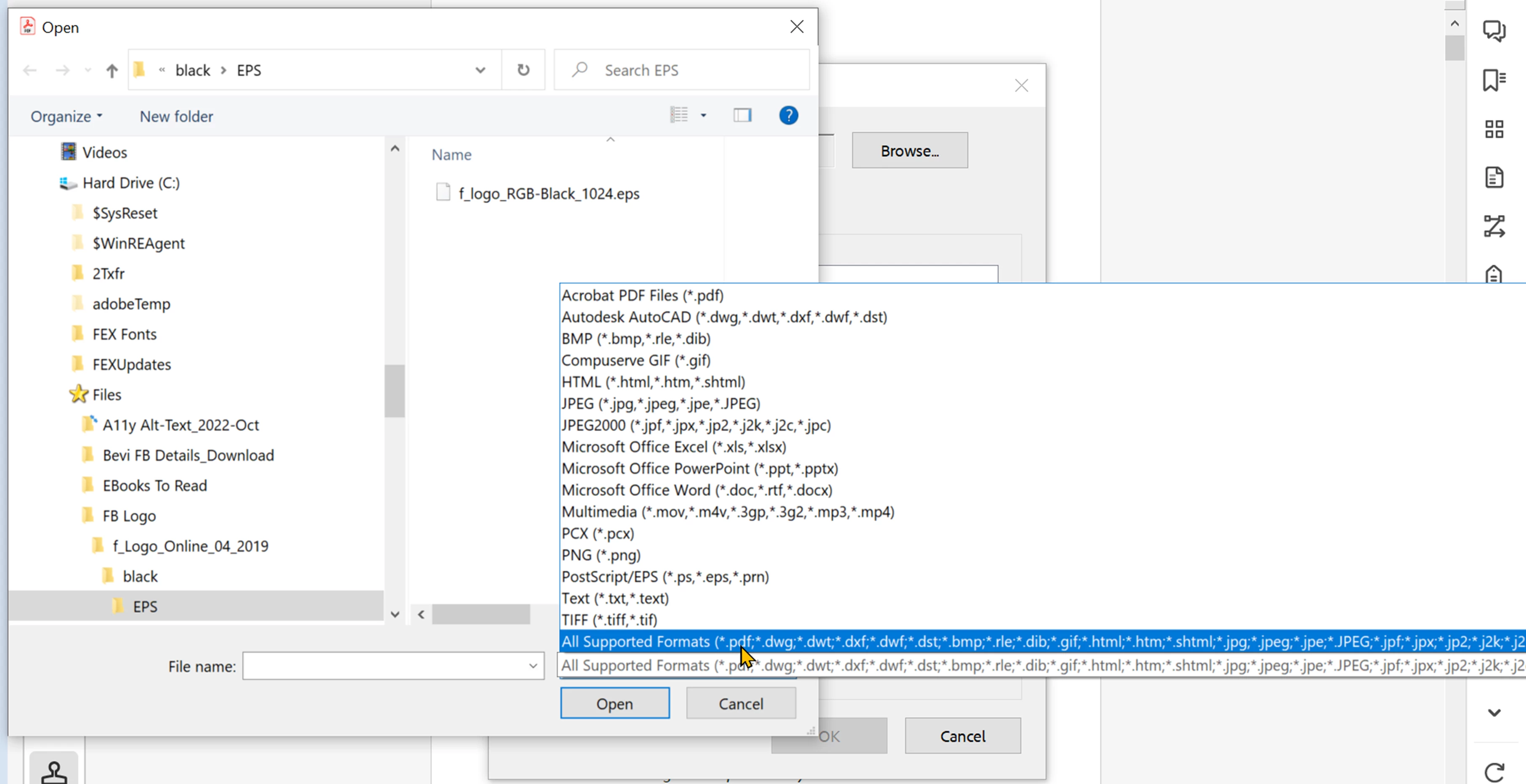 My custom stamps are (AI) files and it seems that according to this i should be able to directly select the AI file in the acrobat dialog box as a suitable stamp file, however, all the AI files are not selectable.