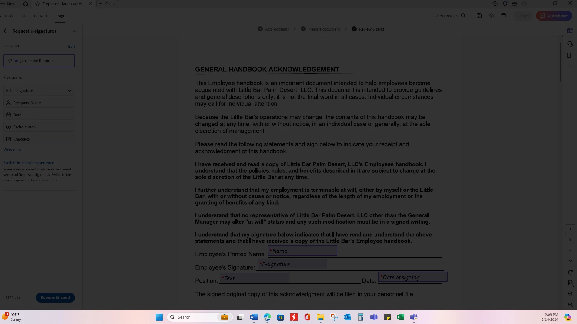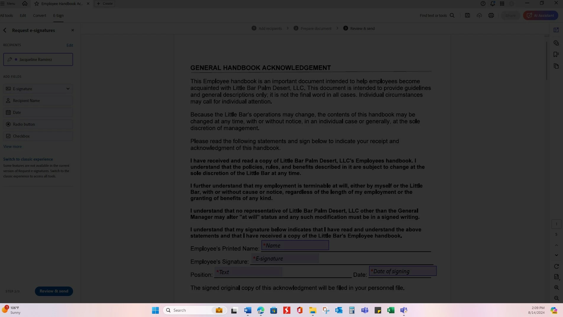 Dark Film over document when clicked on Review and Send while requesting a signature via adobe sign