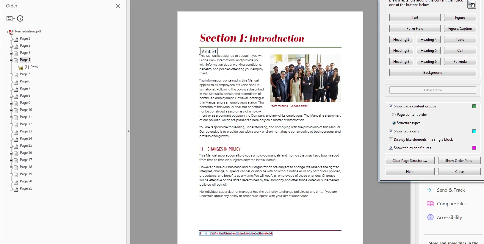 I have a problem while remediating pdf files. on a non-tagged document I select the top line underneath my header and set it as a background (artifact). Afterwards, I go to select the footer and attempt to tag that as a background and no tags will be displayed on the left order pane, nor on the document. I'll even attempt to tag a paragraph; however, that won't get displayed on the left column or create a graphical structure type for the tag on the page. Does anyone know why my Acrobat Pro DC version 2015.023.20053 is acting up this way?