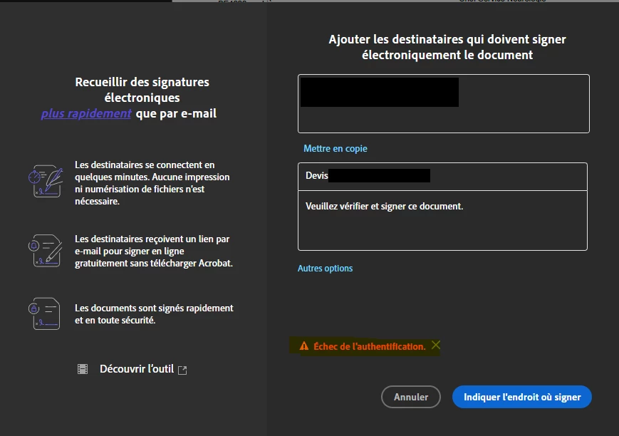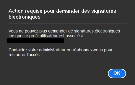 ma licence a été attribuée à un autre service informatique qu'actuellement et, depuis que j'ai du "changer de profil", je n'arrive plus à utiliser l'outil de demande de signature.