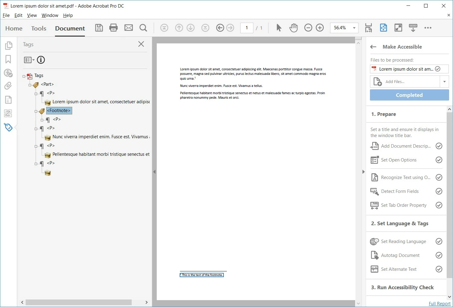 Note that their names are fully spelled out and don't use the required tag name: example, <H1> is shown in the drop-down as Heading 1, but Acrobat puts the correctly spelled tag in the tree.