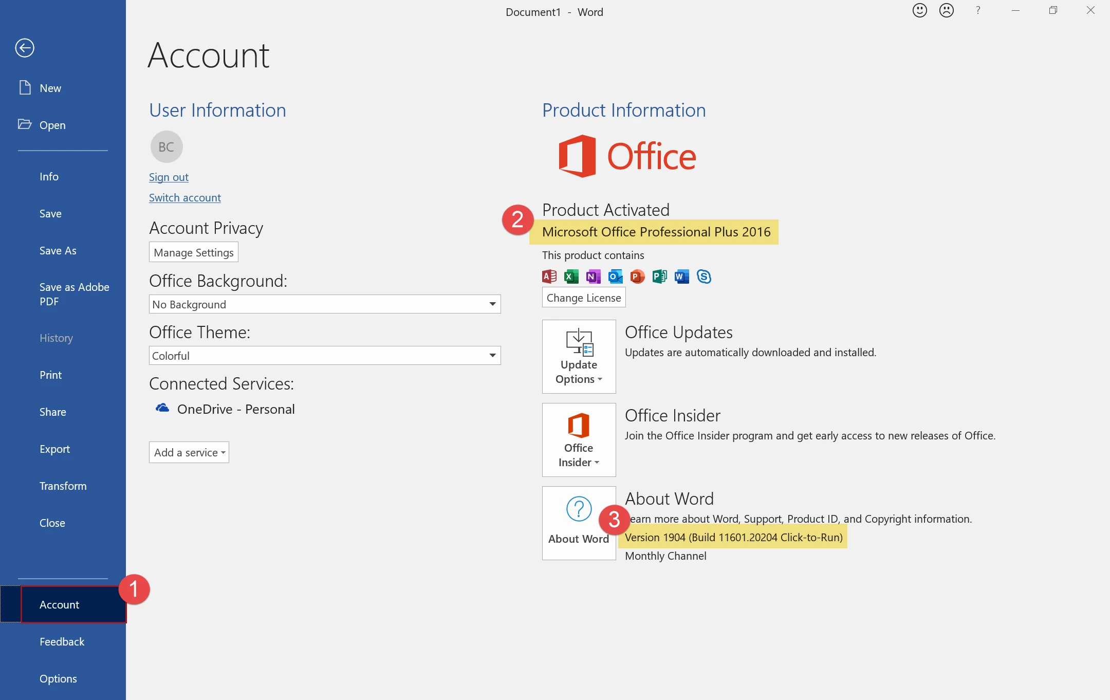 You can find this under File / Account (see screen capture below) - Mac or PC?