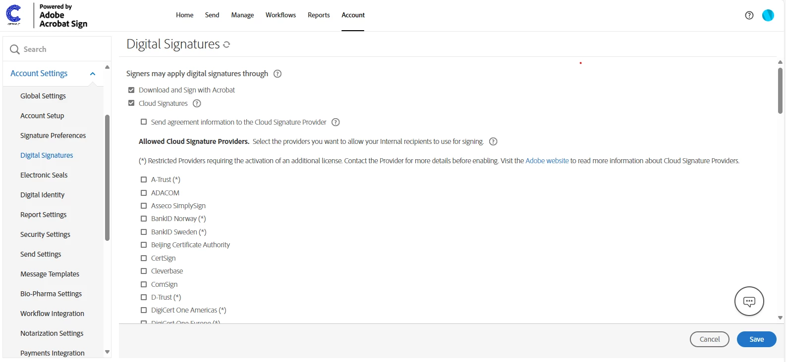 - At the point in the process where I need to actually digitally sign, I'm typically prompted with a pulldown that includes two basic options: (1) Cloud Signatures; (2) Download & Sign with Acrobat.