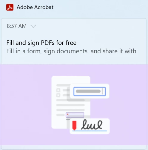 Disable "Fill and sign PDFs for Free" Windows notifications
