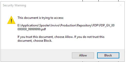 I manage pdf files with an application and after migrating my application on a new server, I'm getting a pop-up when I try to load a pdf as background page.