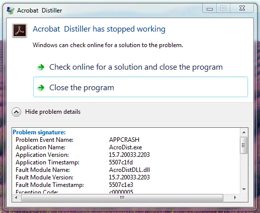 uptaded (through CC) to Acrobat DC. Now  I keep getting a messing arbitrarily popping up "Distiller has stopped working..."