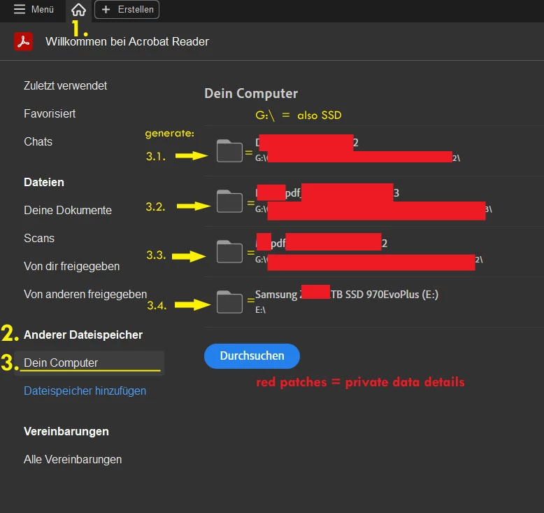 werden alle Ordner mit Laufwerkname und Speicherort angezeigt, die pdf-Dokumente enthalten. Das will ich nicht.