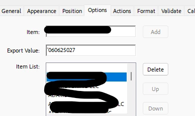 DROP-DOWN LIST EXPORT ITEM STARTS WITH A "ZERO"