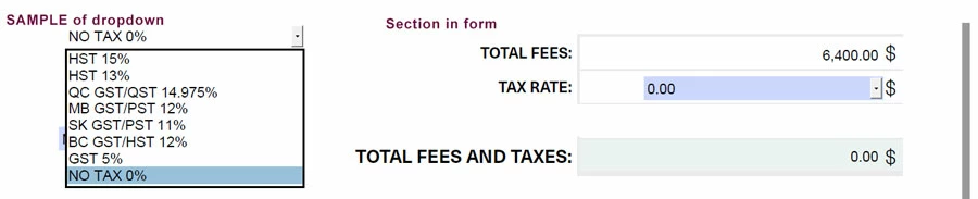 I am trying to calculate percentages from a drop down menu. I have 6 entries (tax rates) in the dropdown. I am not familiar with javascript. Help?